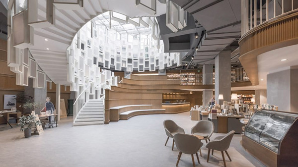 由意大利建筑設計公司 Kokaistudios 創造充滿設計感的筑蹊生活書店,位于浙江省第二大城市寧波市中心,1844 藝術生活中心廣場地下,建筑第一眼就已經讓人留下深刻印象,由扇形玻璃排列出現代化外觀,也呼應內部 L 型內部半透明壓克力板、水泥地面的原色低彩。